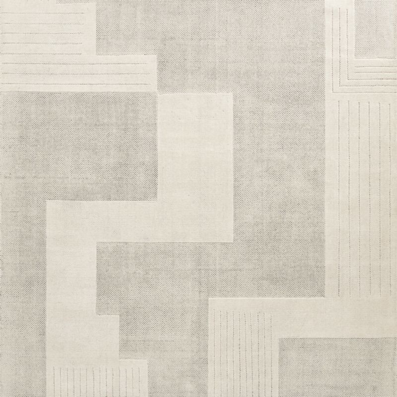 Sophisticated tonal graphic design starts with rug makers hand-looming the base of the rug, then overtufting the pile to create subtle layers of texture on the surface. A final distressing technique adds a vintage feel and gives each area rug unique highs and lows. CB2 exclusive.
