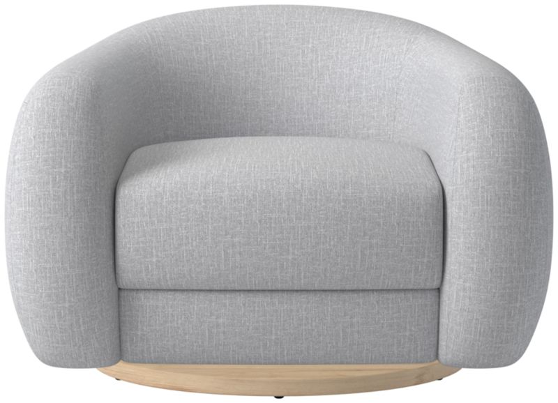 Boucle swivel chair by Los Angeles-based designer Ross Cassidy strikes the perfect balance between modern style and cloud-like comfort. Floating atop a natural oak swivel base, the curved back hugs a generously cushioned seat. Developed exclusively for CB2, It's easily one of our most comfortable swivel chairs to date. CB2 exclusive.