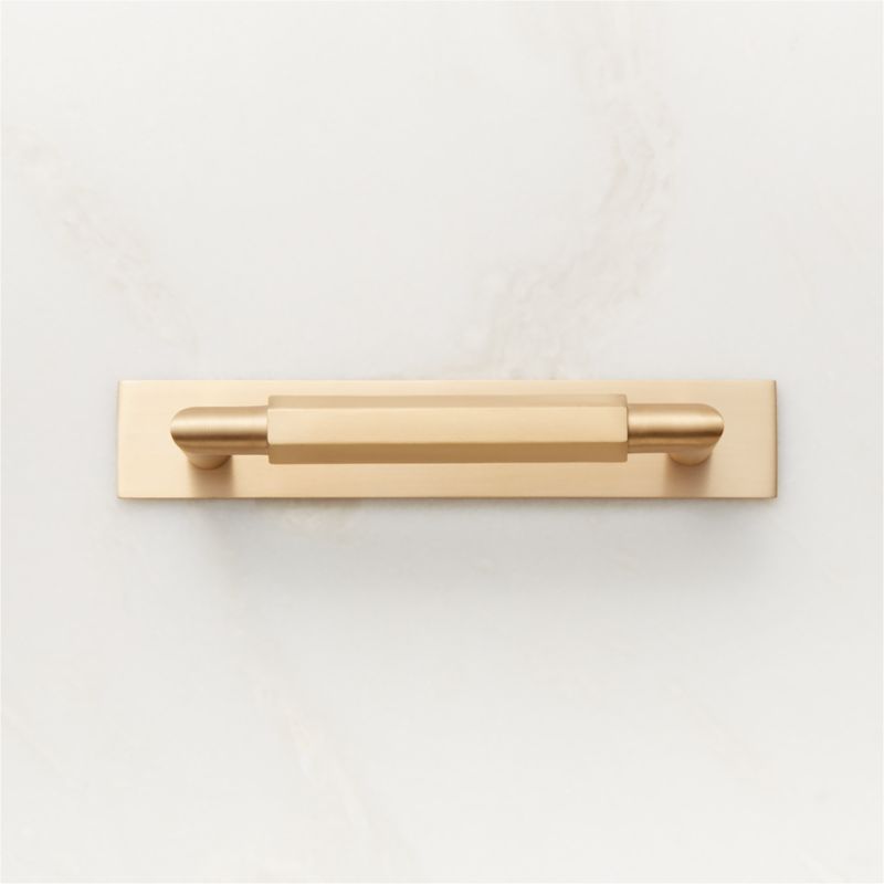 Bold hexagonal cabinet handle is inspired by the geometric architecture of French colonial pillars. Simple but modern form offers a pleasant heft with crisp, defined lines in brushed brass. CB2 exclusive.
