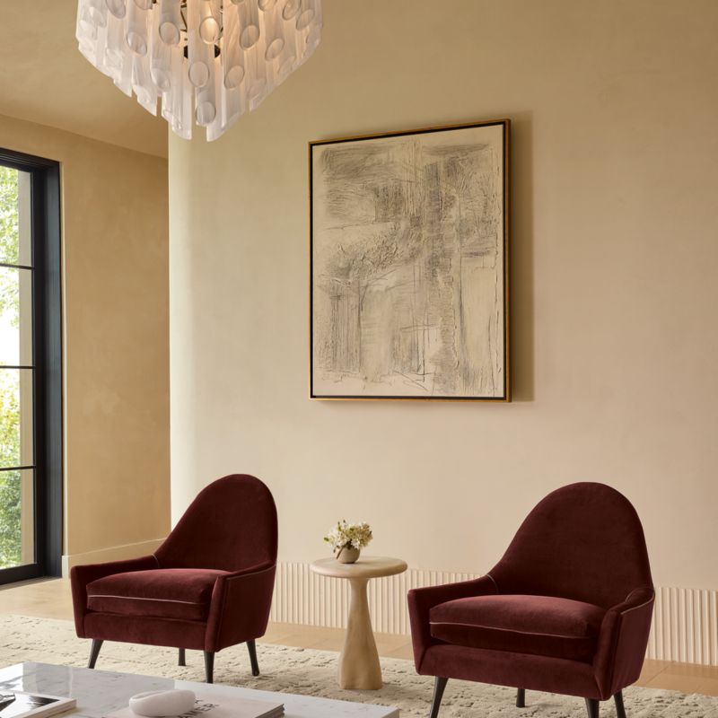 Inspired by vintage crystal chandeliers, round flush mount by award-winning French design duo dach&zephir diffuses light through tubes of handblown milky glass. Complemented by an aged brass frame, the fixture elegantly illuminates a room. Brass is unlacquered, offering a living finish that will develop the patina of a vintage find. CB2 exclusive.