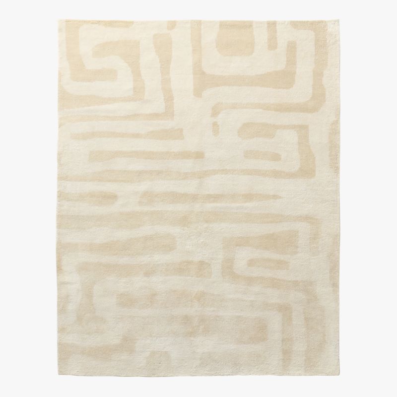 A modern study in nuance and texture, area rug by Laundry Studio pairs sculptural depth with a minimalist sensibility. Hand-knotted from a luxurious blend of New Zealand and Lincoln wool, the pile is cut by hand to reveal subtle tonal carving across an ivory ground. Naturally yarn-dyed and washed for softness, rug is finished by hand with fringe and binding that underscore its craftsmanship. Variations in tone and carving reflect the construction and artisanal process, giving every piece a singular character. CB2 exclusive.