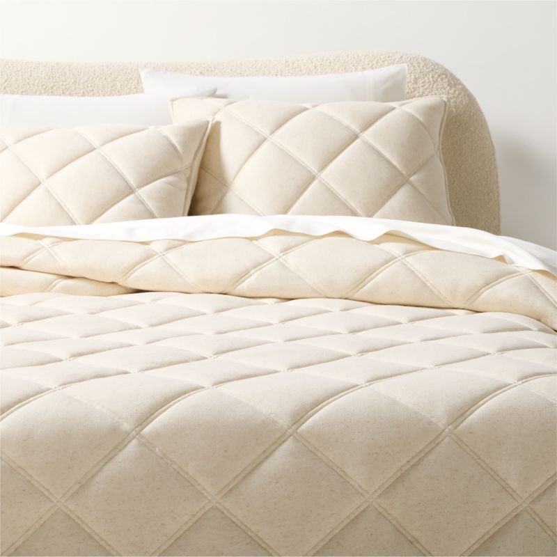 Stitched Organic Cotton Sateen Ivory Full/Queen Quilt