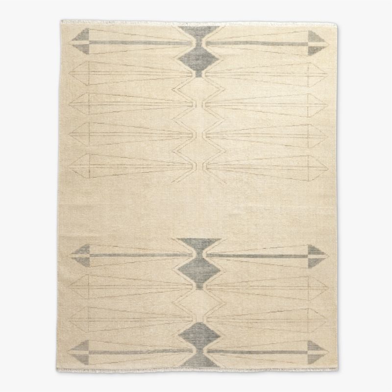 Saffioti Hand-Knotted Warm White New Zealand Wool Area Rug 5'x8'