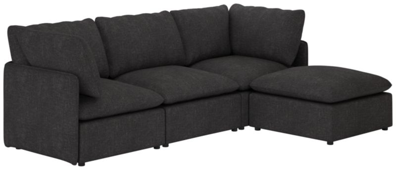 Transform your space with the help of our talented designers. Book NowSink into relaxed luxury with the shallow-depth version of our best-selling, low-slung sofa designed by Barcelona-based Mermelada Estudio. Each piece is hand-assembled in North Carolina by master craftspeople. Artisans craft each sofa with Forest Stewardship Council ®-certified wood, using sinuous wire spring suspension for exceptional support and resilience. Upholstered in a textured, linen-like performance fabric, the standard-sized frame is topped with pillowy cushions finished with a clean piping welt. The backrest cushions provide seamless support, cradling you in plush comfort while retaining their shape and softness. Arrange and rearrange sectional pieces to fit your changing needs. CB2 exclusive.