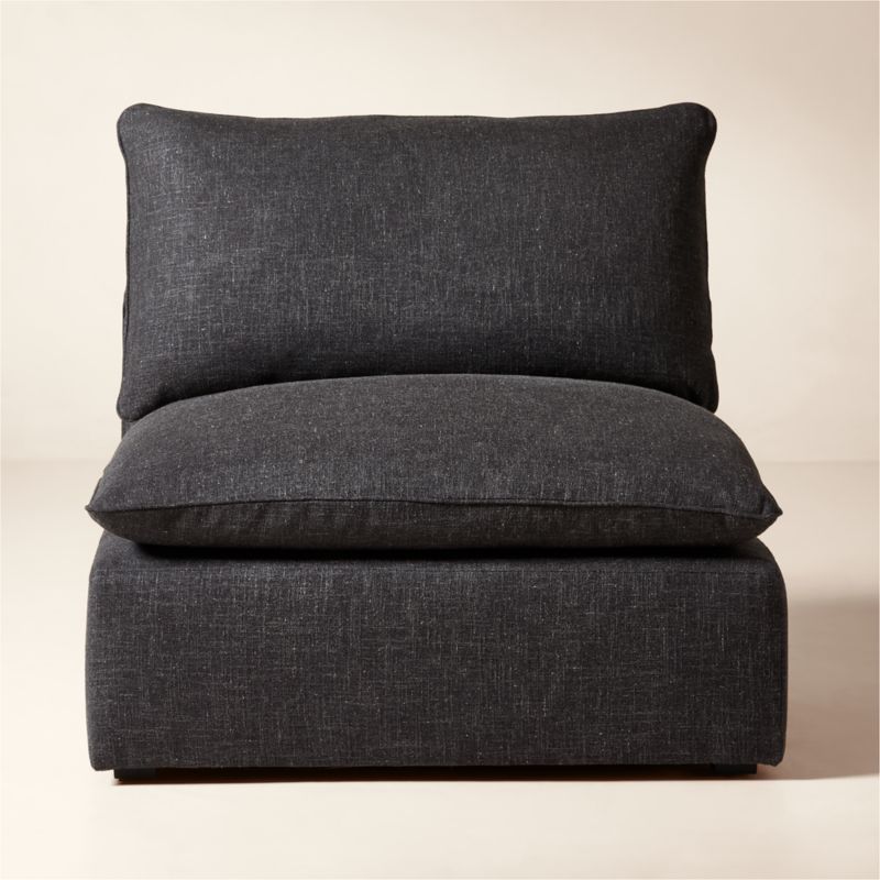 Mermelada Estudio is designed for lounging. The chair is hand-assembled in North Carolina by master craftspeople who form it with Forest Stewardship Council ®-certified wood, using sinuous wire spring suspension for exceptional support and resilience. Upholstered in a textured, linen-like dark grey performance fabric, the frame is topped with a pillow-like cushion finished with a clean piping welt. The backrest cushion provides seamless support, cradling you in plush comfort while retaining its shape and softness. Arrange and rearrange pieces from the Lumis sectional collection to fit your changing needs. CB2 exclusive.