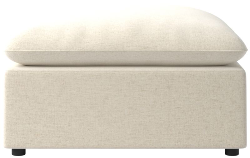 Sink into relaxed luxury with this low-slung design by Mermelada Estudio. Certified sustainable by the Forest Stewardship Council ® (FSC), the ottoman's wood frame is paired with a deep, pillow-topped cushion. Soft, linen-like performance fabric is finished with a clean piping welt. Pair with the standard-sized Lumis sectional to create a configuration that fits your space. CB2 exclusive.