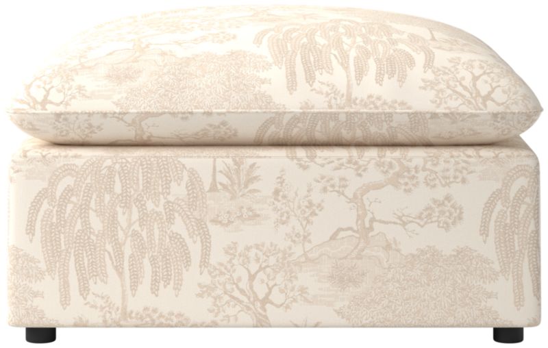 Sink into relaxed luxury with this low-slung design by Mermelada Estudio. Certified sustainable by the Forest Stewardship Council ® (FSC), the ottoman's wood frame is paired with a deep, pillow-topped cushion. Soft, linen-like performance fabric is finished with a clean piping welt. Pair with the standard-sized Lumis sectional to create a configuration that fits your space. CB2 exclusive.