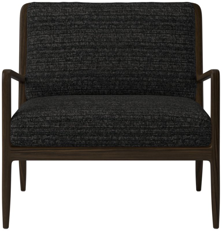 Hand-assembled accent chair by Mermelada Estudio balances a slim, curved wood frame with a fabric cushion. Red oak frame, certified sustainable by the Forest Stewardship Council®, sports steam-bent arms shaped at a tight radius for an impossibly thin form. The chair's streamlined silhouette pairs perfectly with the warm, organic feel of the materials to create a seating that's equally comfortable and sophisticated. CB2 exclusive.