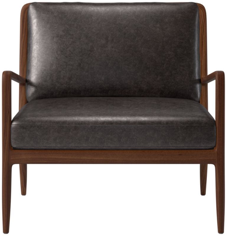 Mermelada Estudio balances a slim, curved wood frame with a cushion wrapped in rich, full-grain leather. Made with cowhides sourced from the United States, the leather has an oil wax finish that brings out its natural texture and depth. Red oak frame, certified sustainable by the Forest Stewardship Council®, sports steam-bent arms shaped at a tight radius for an impossibly thin form. The chair's streamlined silhouette pairs perfectly with the warm, organic feel of the materials to create a seating that's equally comfortable and sophisticated. CB2 exclusive.