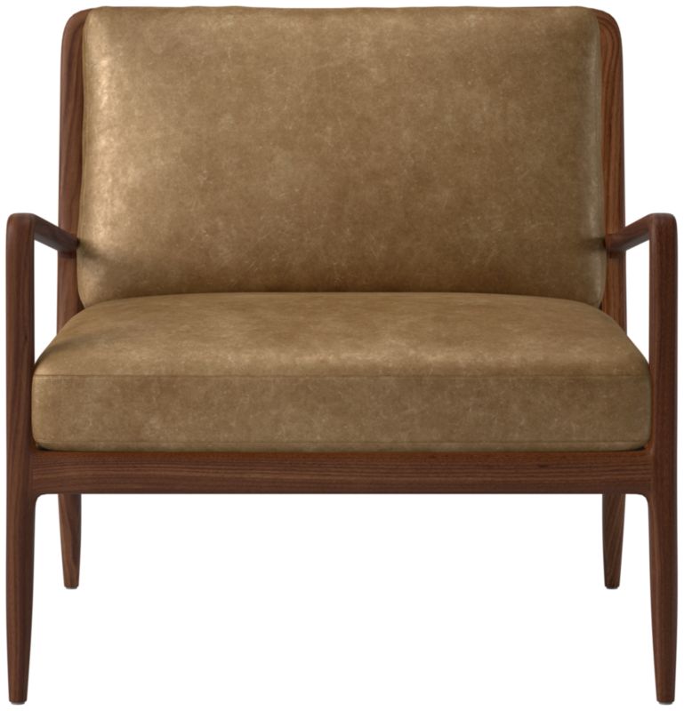Mermelada Estudio balances a slim, curved wood frame with a cushion wrapped in rich, full-grain leather. Made with cowhides sourced from the United States, the leather has an oil wax finish that brings out its natural texture and depth. Red oak frame, certified sustainable by the Forest Stewardship Council®, sports steam-bent arms shaped at a tight radius for an impossibly thin form. The chair's streamlined silhouette pairs perfectly with the warm, organic feel of the materials to create a seating that's equally comfortable and sophisticated. CB2 exclusive.