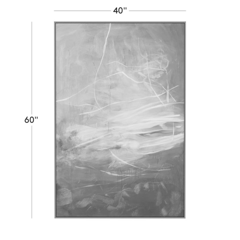 A study of depth and bold contrasts, Ksenia Sizaya's "Luthyia" makes a dynamic statement. The artist applies paint expressively, using brushes, palette knives, combs and spatulas to create loose, playful lines. "Skating on an outdoor lake leaves a path behind you, creating a human drawing on the landscape," Sizaya explains. "When the ice is fresh, it is like skating on a gemstone." CB2 exclusive.