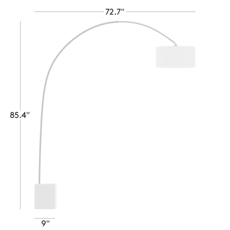 Floor lamp's sleek lines converge with beautiful finishes in a Jannis Ellenberger design. Made of iron with a champagne brass finish, it sits upon a base of white Carrara marble that is carved by hand and honed to a smooth finish. A telescoping, adjustable arm can be positioned to accommodate multiple uses and spaces. A crisp, clean white linen shade, complete with diffuser, softens the light. CB2 exclusive.