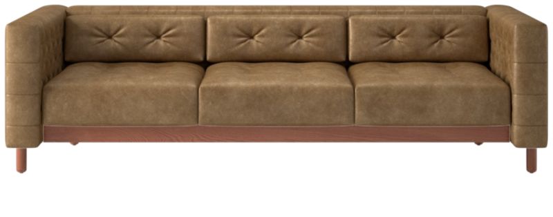 This sleek, low sofa was originally created by iconic Italian designer Gianfranco Frattini for the fashionable Restaurant St. Andrews in the heart of old Milan. To evoke the warm atmosphere of a traditional British club, he accented rich Italian leather with hand-sewn button tufts on the interior sides and cushions. Now, the modern classic returns with the same spirit of the original design, down to the inset walnut legs that are characteristic of the designer's signature style. CB2 exclusive.
