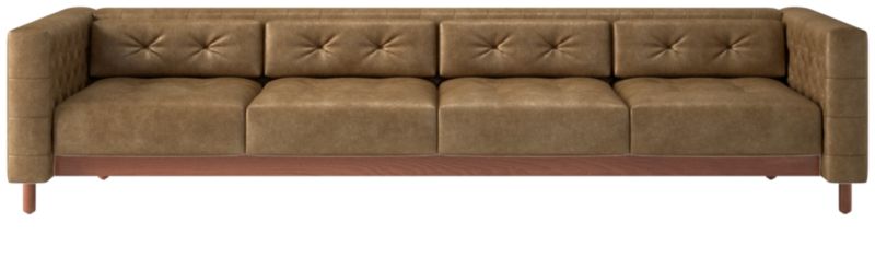 This sleek, low sofa was originally created by iconic Italian designer Gianfranco Frattini for the fashionable Restaurant St. Andrews in the heart of old Milan. To evoke the warm atmosphere of a traditional British club, he accented rich Italian leather with hand-sewn button tufts on the interior sides and cushions. Now, the modern classic returns with the same spirit of the original design, down to the inset walnut legs that are characteristic of the designer's signature style. CB2 exclusive.