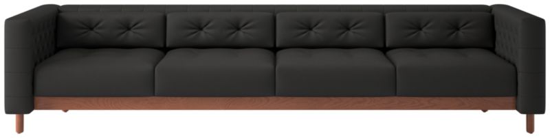 This sleek, low sofa was originally created by iconic Italian designer Gianfranco Frattini for the fashionable Restaurant St. Andrews in the heart of old Milan. Now, a modern classic returns with the same spirit of the original design, reimagined with room for four. Period-authentic details include hand-sewn button tufts on the interior sides and cushions, along with the inset walnut legs that are characteristic of the designer's signature style. CB2 exclusive.