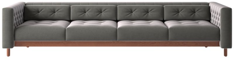 This sleek, low sofa was originally created by iconic Italian designer Gianfranco Frattini for the fashionable Restaurant St. Andrews in the heart of old Milan. Now, a modern classic returns with the same spirit of the original design, reimagined with room for four. Period-authentic details include hand-sewn button tufts on the interior sides and cushions, along with the inset walnut legs that are characteristic of the designer's signature style. CB2 exclusive.