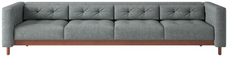This sleek, low sofa was originally created by iconic Italian designer Gianfranco Frattini for the fashionable Restaurant St. Andrews in the heart of old Milan. Now, a modern classic returns with the same spirit of the original design, reimagined with room for four. Period-authentic details include hand-sewn button tufts on the interior sides and cushions, along with the inset walnut legs that are characteristic of the designer's signature style. CB2 exclusive.