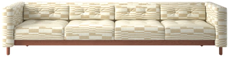 This sleek, low sofa was originally created by iconic Italian designer Gianfranco Frattini for the fashionable Restaurant St. Andrews in the heart of old Milan. Now, a modern classic returns with the same spirit of the original design, reimagined with room for four. Period-authentic details include hand-sewn button tufts on the interior sides and cushions, along with the inset walnut legs that are characteristic of the designer's signature style. CB2 exclusive.