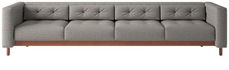 This sleek, low sofa was originally created by iconic Italian designer Gianfranco Frattini for the fashionable Restaurant St. Andrews in the heart of old Milan. Now, a modern classic returns with the same spirit of the original design, reimagined with room for four. Period-authentic details include hand-sewn button tufts on the interior sides and cushions, along with the inset walnut legs that are characteristic of the designer's signature style. CB2 exclusive.