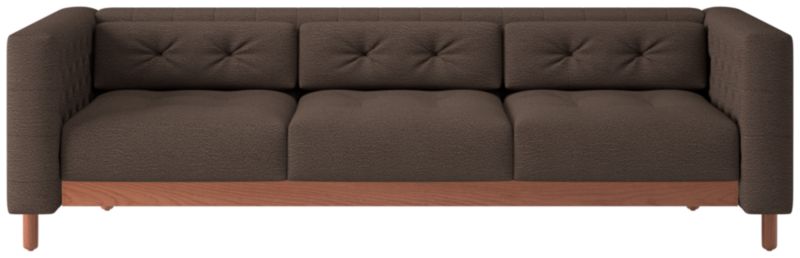 This sleek, low sofa was originally created by iconic Italian designer Gianfranco Frattini for the fashionable Restaurant St. Andrews in the heart of old Milan. Now, a modern classic returns with the same spirit of the original design, with room for three. Period-authentic details include hand-sewn button tufts on the interior sides and cushions, along with the inset walnut legs that are characteristic of the designer's signature style. CB2 exclusive.