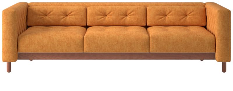 This sleek, low sofa was originally created by iconic Italian designer Gianfranco Frattini for the fashionable Restaurant St. Andrews in the heart of old Milan. Now, a modern classic returns with the same spirit of the original design, with room for three. Period-authentic details include hand-sewn button tufts on the interior sides and cushions, along with the inset walnut legs that are characteristic of the designer's signature style. CB2 exclusive.