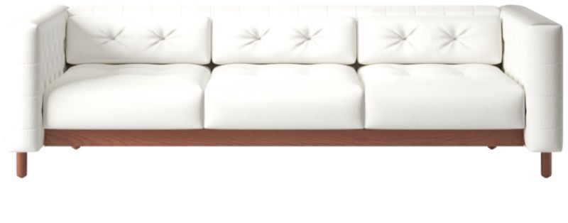 This sleek, low sofa was originally created by iconic Italian designer Gianfranco Frattini for the fashionable Restaurant St. Andrews in the heart of old Milan. Now, a modern classic returns with the same spirit of the original design, with room for three. Period-authentic details include hand-sewn button tufts on the interior sides and cushions, along with the inset walnut legs that are characteristic of the designer's signature style. CB2 exclusive.