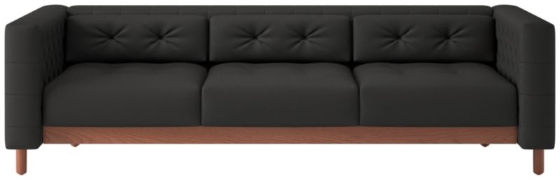 This sleek, low sofa was originally created by iconic Italian designer Gianfranco Frattini for the fashionable Restaurant St. Andrews in the heart of old Milan. Now, a modern classic returns with the same spirit of the original design, with room for three. Period-authentic details include hand-sewn button tufts on the interior sides and cushions, along with the inset walnut legs that are characteristic of the designer's signature style. CB2 exclusive.