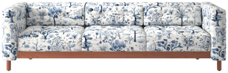 This sleek, low sofa was originally created by iconic Italian designer Gianfranco Frattini for the fashionable Restaurant St. Andrews in the heart of old Milan. Now, a modern classic returns with the same spirit of the original design, with room for three. Period-authentic details include hand-sewn button tufts on the interior sides and cushions, along with the inset walnut legs that are characteristic of the designer's signature style. CB2 exclusive.