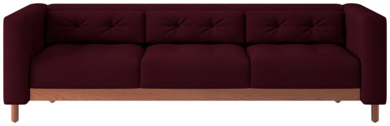 This sleek, low sofa was originally created by iconic Italian designer Gianfranco Frattini for the fashionable Restaurant St. Andrews in the heart of old Milan. Now, a modern classic returns with the same spirit of the original design, with room for three. Period-authentic details include hand-sewn button tufts on the interior sides and cushions, along with the inset walnut legs that are characteristic of the designer's signature style. CB2 exclusive.