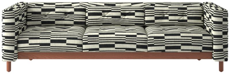 This sleek, low sofa was originally created by iconic Italian designer Gianfranco Frattini for the fashionable Restaurant St. Andrews in the heart of old Milan. Now, a modern classic returns with the same spirit of the original design, with room for three. Period-authentic details include hand-sewn button tufts on the interior sides and cushions, along with the inset walnut legs that are characteristic of the designer's signature style. CB2 exclusive.