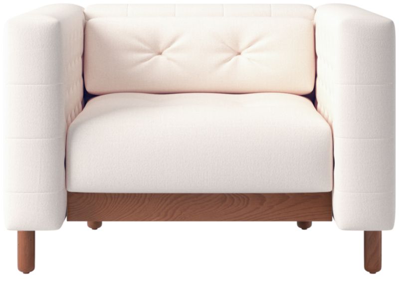 Sleek, low-profile accent chair was originally created by iconic Italian designer Gianfranco Frattini for the fashionable Restaurant St. Andrews in the heart of old Milan. Now, a modern classic returns with the same spirit of the original design. Period-authentic details include hand-sewn button tufts on the interior sides and cushions, along with the inset walnut legs that are characteristic of the designer's signature style. CB2 exclusive.