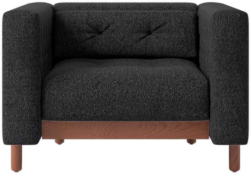Sleek, low-profile accent chair was originally created by iconic Italian designer Gianfranco Frattini for the fashionable Restaurant St. Andrews in the heart of old Milan. Now, a modern classic returns with the same spirit of the original design. Period-authentic details include hand-sewn button tufts on the interior sides and cushions, along with the inset walnut legs that are characteristic of the designer's signature style. CB2 exclusive.