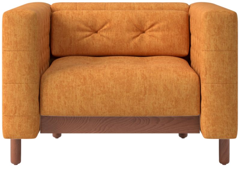 Sleek, low-profile accent chair was originally created by iconic Italian designer Gianfranco Frattini for the fashionable Restaurant St. Andrews in the heart of old Milan. Now, a modern classic returns with the same spirit of the original design. Period-authentic details include hand-sewn button tufts on the interior sides and cushions, along with the inset walnut legs that are characteristic of the designer's signature style. CB2 exclusive.