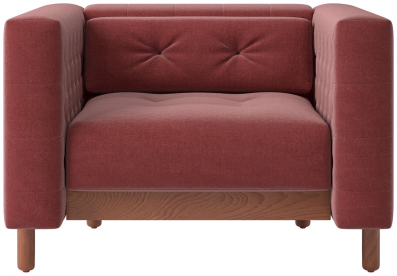 Sleek, low-profile accent chair was originally created by iconic Italian designer Gianfranco Frattini for the fashionable Restaurant St. Andrews in the heart of old Milan. Now, a modern classic returns with the same spirit of the original design. Period-authentic details include hand-sewn button tufts on the interior sides and cushions, along with the inset walnut legs that are characteristic of the designer's signature style. CB2 exclusive.