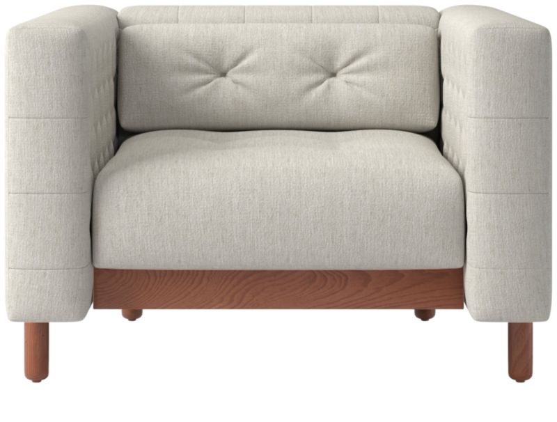 Sleek, low-profile accent chair was originally created by iconic Italian designer Gianfranco Frattini for the fashionable Restaurant St. Andrews in the heart of old Milan. Now, a modern classic returns with the same spirit of the original design. Period-authentic details include hand-sewn button tufts on the interior sides and cushions, along with the inset walnut legs that are characteristic of the designer's signature style. CB2 exclusive.