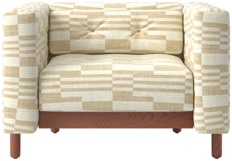 Sleek, low-profile accent chair was originally created by iconic Italian designer Gianfranco Frattini for the fashionable Restaurant St. Andrews in the heart of old Milan. Now, a modern classic returns with the same spirit of the original design. Period-authentic details include hand-sewn button tufts on the interior sides and cushions, along with the inset walnut legs that are characteristic of the designer's signature style. CB2 exclusive.