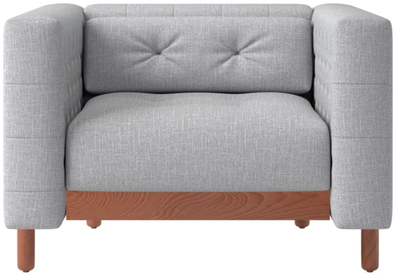 Sleek, low-profile accent chair was originally created by iconic Italian designer Gianfranco Frattini for the fashionable Restaurant St. Andrews in the heart of old Milan. Now, a modern classic returns with the same spirit of the original design. Period-authentic details include hand-sewn button tufts on the interior sides and cushions, along with the inset walnut legs that are characteristic of the designer's signature style. CB2 exclusive.