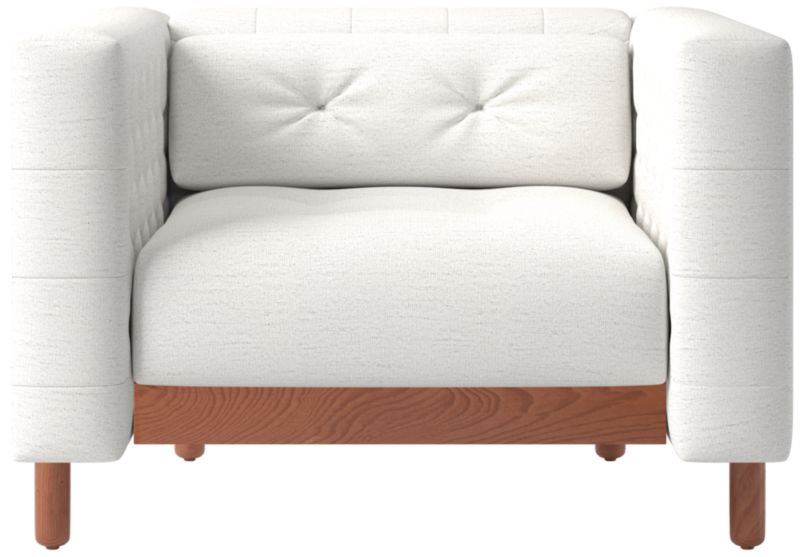 Sleek, low-profile accent chair was originally created by iconic Italian designer Gianfranco Frattini for the fashionable Restaurant St. Andrews in the heart of old Milan. Now, a modern classic returns with the same spirit of the original design. Period-authentic details include hand-sewn button tufts on the interior sides and cushions, along with the inset walnut legs that are characteristic of the designer's signature style. CB2 exclusive.