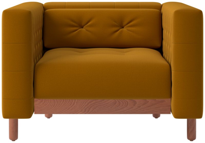 Sleek, low-profile accent chair was originally created by iconic Italian designer Gianfranco Frattini for the fashionable Restaurant St. Andrews in the heart of old Milan. Now, a modern classic returns with the same spirit of the original design. Period-authentic details include hand-sewn button tufts on the interior sides and cushions, along with the inset walnut legs that are characteristic of the designer's signature style. CB2 exclusive.