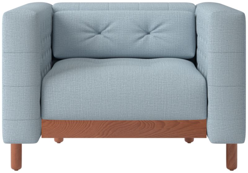 Sleek, low-profile accent chair was originally created by iconic Italian designer Gianfranco Frattini for the fashionable Restaurant St. Andrews in the heart of old Milan. Now, a modern classic returns with the same spirit of the original design. Period-authentic details include hand-sewn button tufts on the interior sides and cushions, along with the inset walnut legs that are characteristic of the designer's signature style. CB2 exclusive.