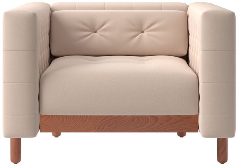 Sleek, low-profile accent chair was originally created by iconic Italian designer Gianfranco Frattini for the fashionable Restaurant St. Andrews in the heart of old Milan. Now, a modern classic returns with the same spirit of the original design. Period-authentic details include hand-sewn button tufts on the interior sides and cushions, along with the inset walnut legs that are characteristic of the designer's signature style. CB2 exclusive.