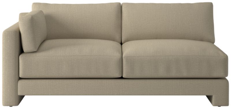 Perfectly proportioned in scale, left-arm sofa has a slim frame with quality apparent throughout. Kiln-dried wooden frame is hand-crafted in the United States and certified sustainable by the Forest Stewardship Council ® (FSC). Thick foam-core cushions are generously filled with a feather blend for exceptional comfort. The piece is upholstered in an easy-to-clean Crypton ® performance fabric that feels like a plush chenille with a hint of linen, giving it a soft texture designed to withstand plenty of wear while retaining its casually elegant feel. CB2 exclusive.