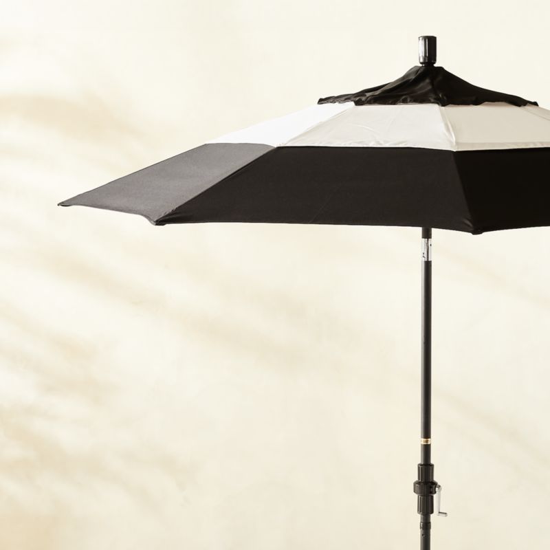 View CartMarket Round Black & Natural White Stripe Outdoor Umbrella with Black Pole
