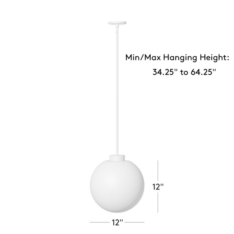 Frosted glass globe pendant by Jannis Ellenberger is a modern interpretation of retro globe designs, marrying fundamental design with clean details. One continuous piece of polished brass suspends the softly frosted globe, providing visual continuity. CB2 exclusive.