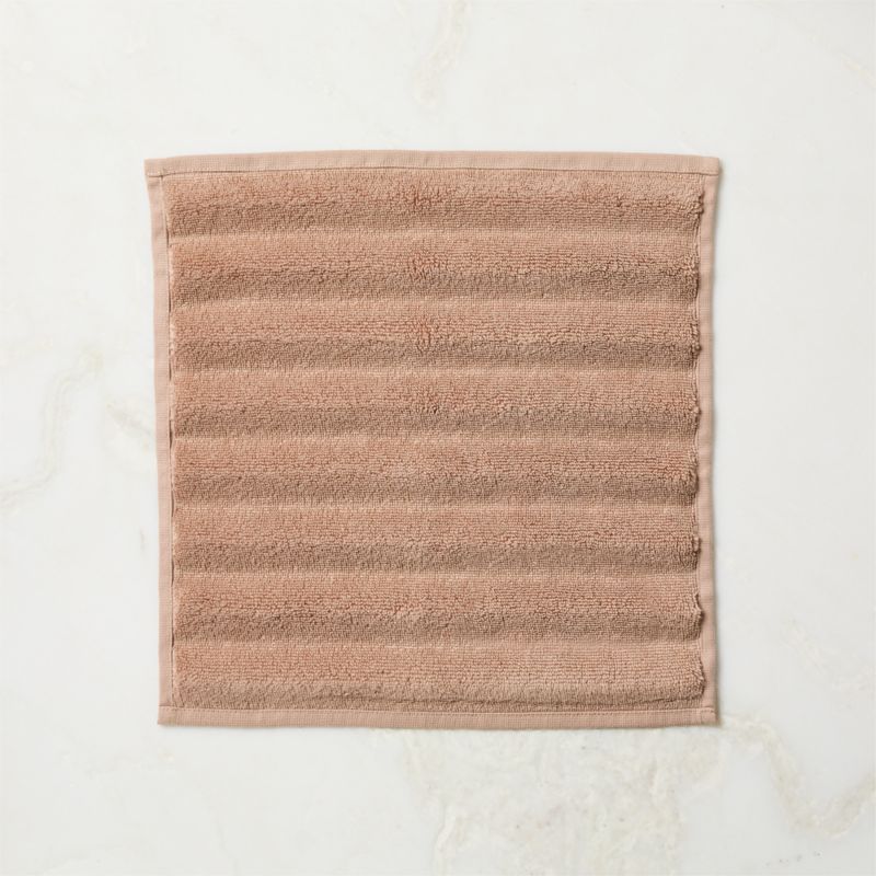 A wavy take on classic hotel linens, certified organic Turkish cotton washcloth adds a modern touch. Loomed to a rich 450 grams per square meter, the towel offers the unmatched absorbency and softness of premium Turkish cotton. Fluffy yet quick-drying, the wavy, ribbed texture feels extra plush for an elevated everyday towel. Coordinate with the Matin bath mats. CB2 exclusive.