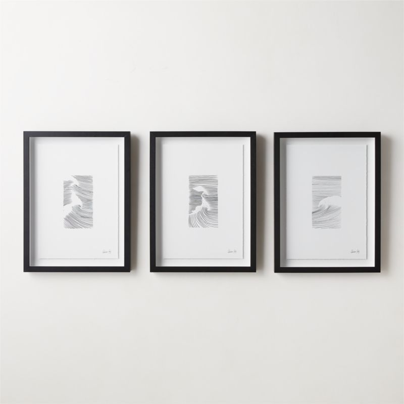 In Amber Fey's "Mavericks" series, the artist explores the idea of waves as an impermeant shape created by the wind skimming across the water. "As homage to this, I wanted to use negative space to create the illusion of a wave," she explains. Fey captures these characteristics using black ink and a steady hand. CB2 exclusive.
