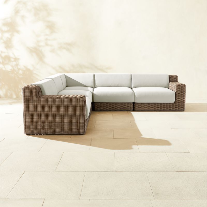 View CartMaylin 5-Piece All-Weather Rattan Outdoor Sectional Sofa with Warm White Sunbrella® Cushions