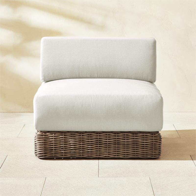 View CartMaylin All-Weather Rattan Outdoor Armless Chair with Warm White Sunbrella® Cushions
