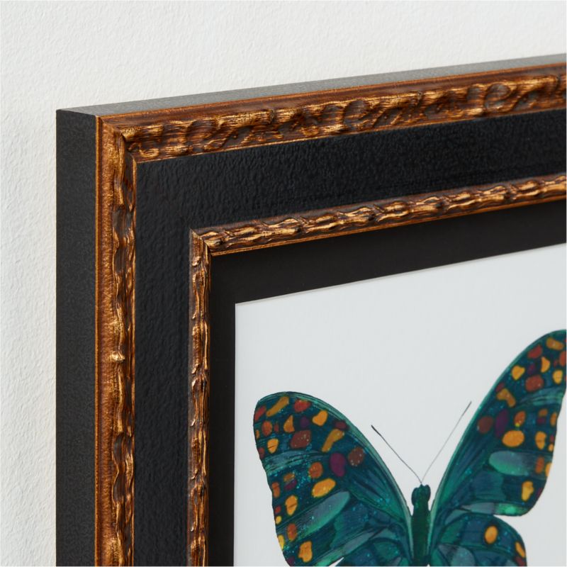 "I've always been drawn to the fragile beauty of the butterfly," says artist and designer Matthew Williamson. "I love the precise symmetry and wonderful colors found within the wings." In "Metamorphosis II," cool teal and blue hues give way to warm orange and red tones at the butterfly's wing tips. Part of a trio of watercolor paintings of butterflies, the giclée print on premium paper is hand-set into its gilded frame in Chicago.