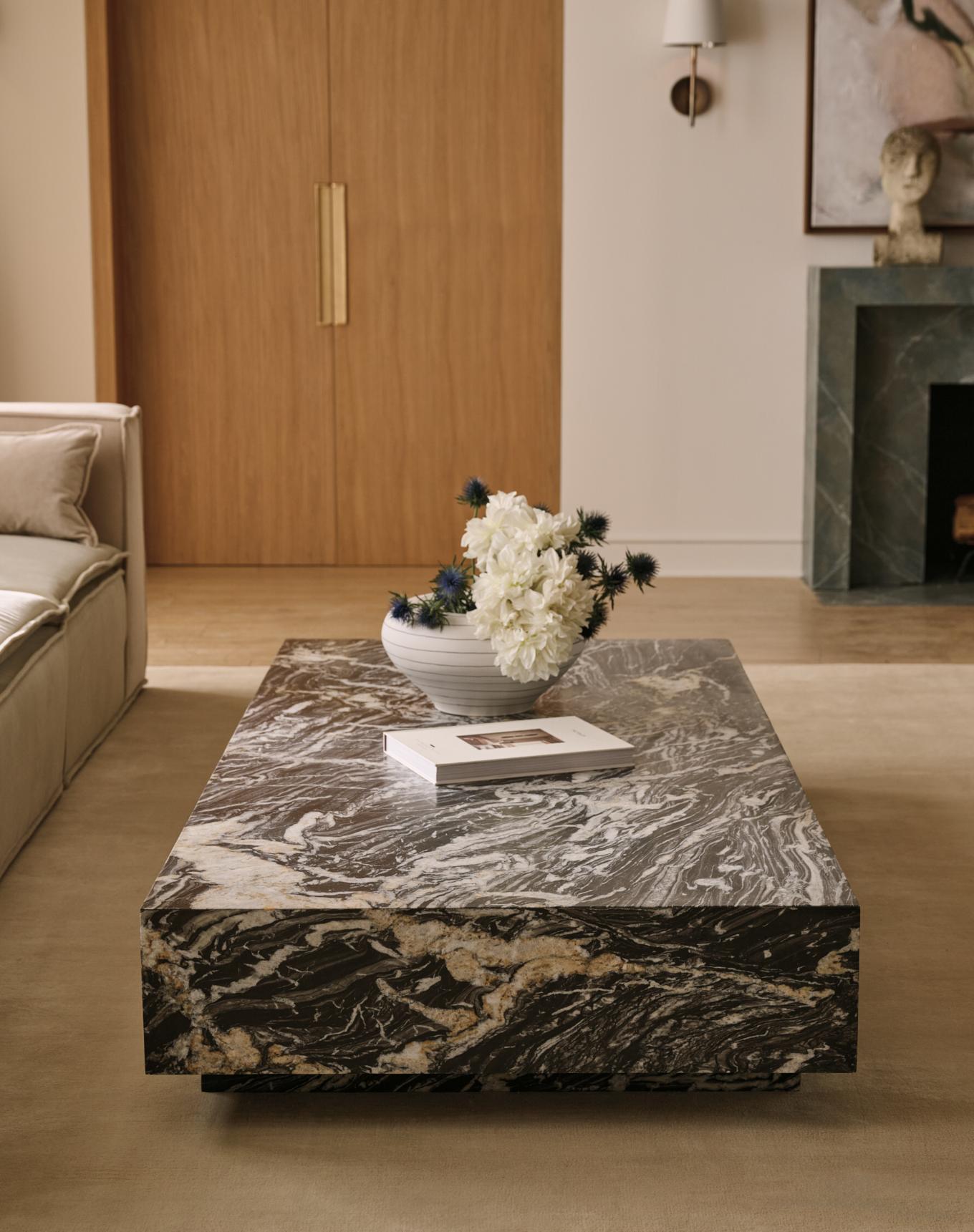 Marble and stone bring a sense of luxury and timelessness to any room. Their natural veining and textures create a unique visual interest that can't be replicated by any other material. From sleek, modern designs to classic, traditional styles, pieces made of travertine and onyx seamlessly blend with a variety of interior aesthetics. Plus, their neutral tones and organic textures make them versatile to complement any color palette or decor style.